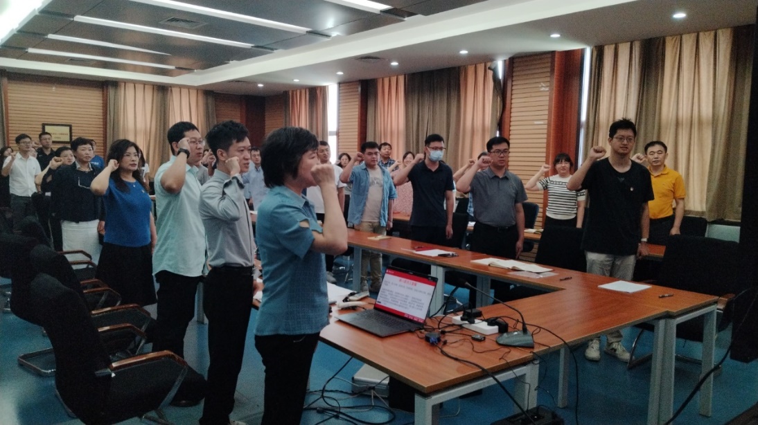 随后,与会教师在韩雁同志的带领下重温教师誓词,时刻牢记新时代高校教师的责任与使命。全体与会党员在中欧工程师系党支部书记带领下重温入党誓词,用铿锵有力的声音再次坚定初心使命。