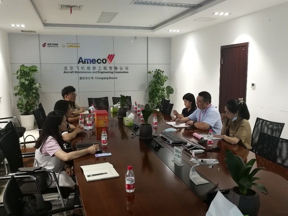 北京飞机维修工程有限公司重庆分公司主要承担国航在重庆江北国际机场的航线维护工作。近些年来,先后有3名中欧学子来该公司工作。在9日下午的座谈会上,主管公司人事的康经理对学院毕业生在工作中的突出表现给予了高度评价。与此同时,学院就2021年学生暑期实习问题与公司进行了意见交换并达成了共识。