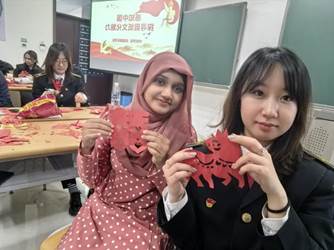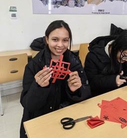 随后,同学们热情投入剪纸实践环节。中外学生相互交流、协作创作,完成一幅幅剪纸作品;大家围绕成果展开轻松愉快的讨论,在互动中进一步感知中华文化的深厚底蕴。