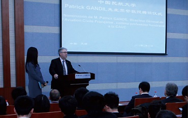 2014年2月,法国民航局长帕特里克•冈蒂尔来访,受聘为中国民航大学荣誉教授。