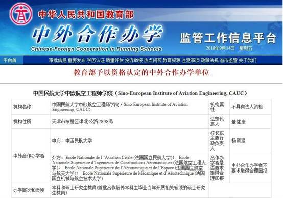 中欧航空工程师学院是经我国教育部正式批准成立的中外合作办学机构,2007年4月中欧航空工程师学院获教育部批准正式建立,同年九月中欧航空工程师学院正式招生100名。