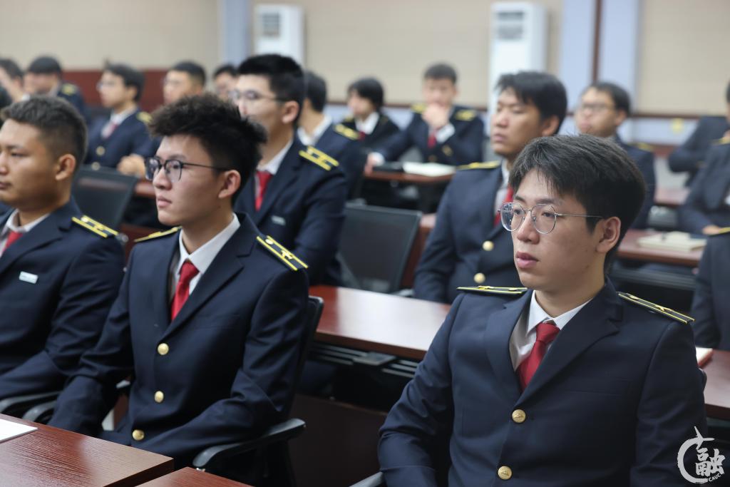 曹胜利全面梳理了中国民航大学的发展脉络,讲述了中航大人的使命和担当。他指出,一代代中航大人栉风沐雨,赓续红色血脉,坚守“建民航、兴民航、强民航”的初心,接续培育了“忠诚、爱国、奋斗”的家国情怀,铸就了“明德至善、弘毅兴邦”的校训精神。他结合“长征精神”对校训“明德至善、弘毅兴邦”的内涵进行了深刻剖析,带领同学们现场诵读了毛泽东的诗词《七律·长征》,同时向同学们推荐《抗日战争》《解放战争》《朝鲜战争》等书籍。