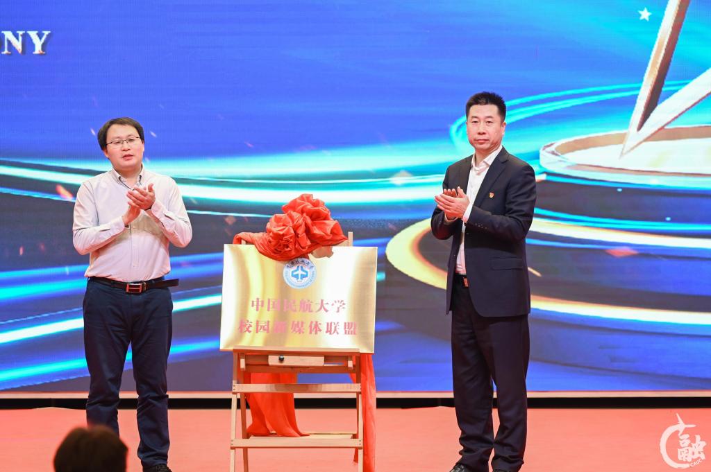 曹胜利与胡洪共同为中国民航大学校园新媒体联盟揭牌。