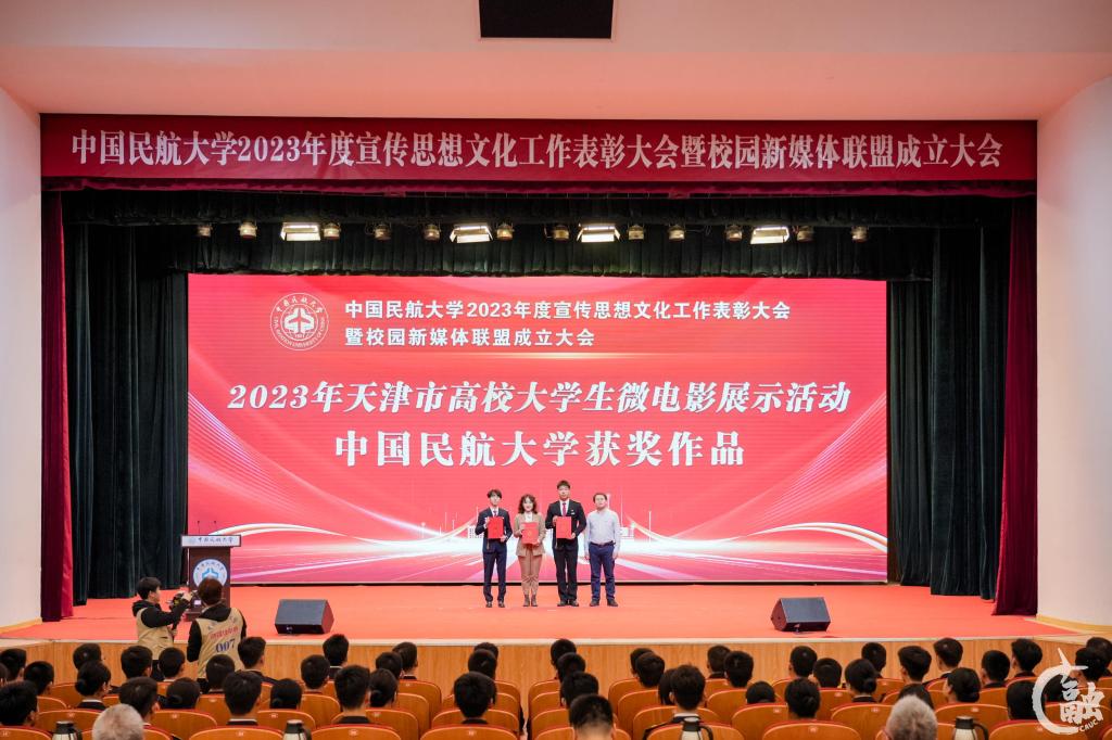 胡洪为中国民航大学在2023年天津市高校大学生微电影展示活动中获奖的作品颁奖。
