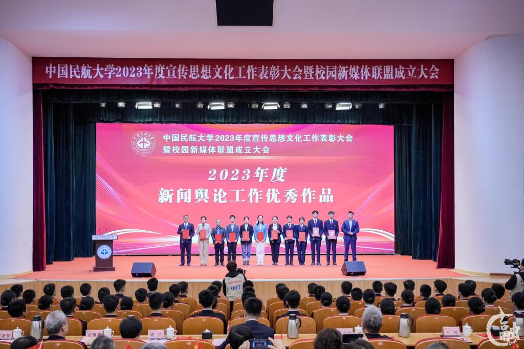 王晖宣读《中国民航大学2023年度新闻舆论工作优秀作品表彰名单》并颁奖。