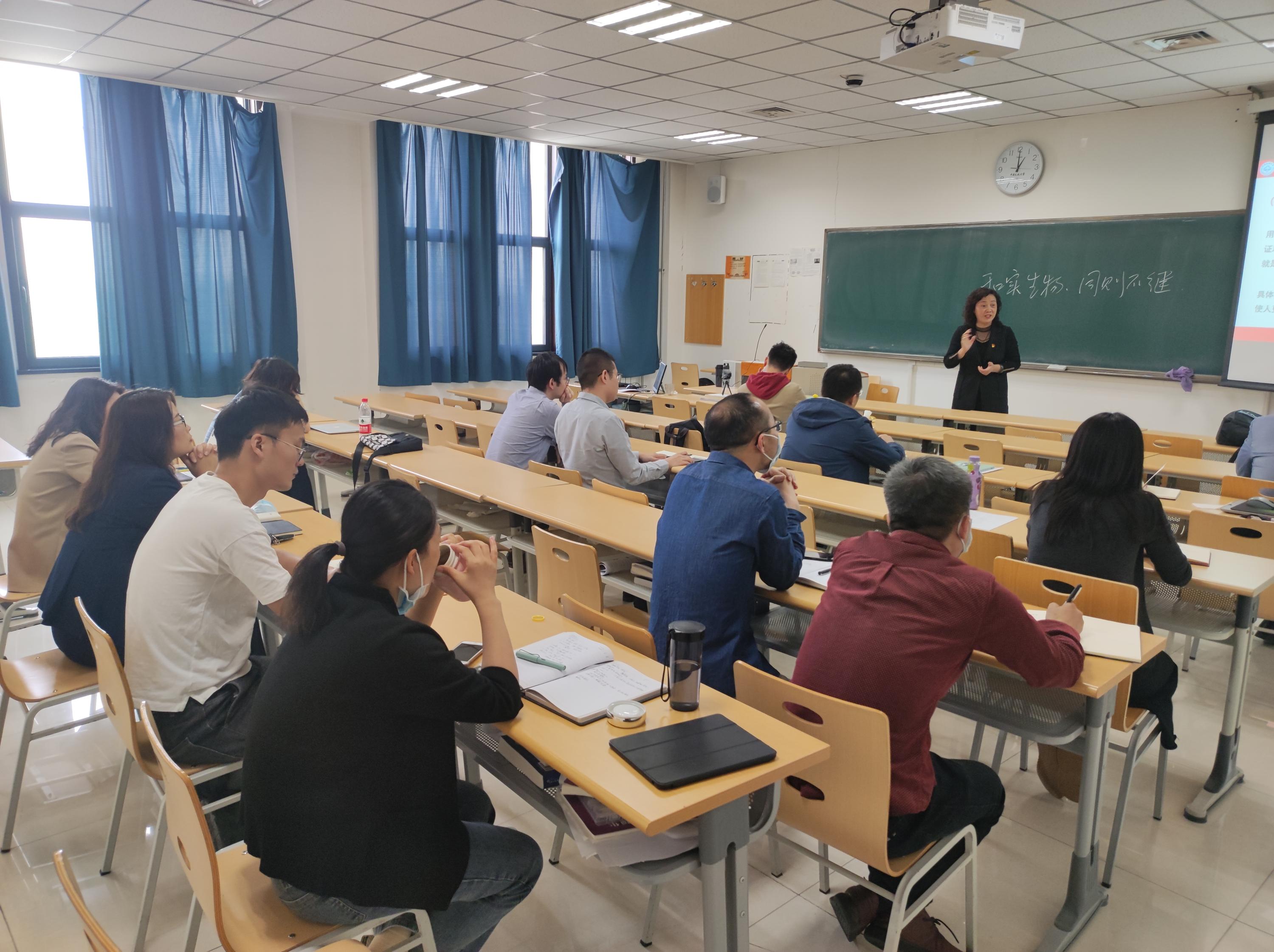 张家艳副教授把自己的思想政治理论知识体系和35年的教学经验与老师们做了分享,也为老师们梳理了课程思政的思路和方式方法,系统讲授了六大思维能力,强调要把这些思维能力和思维方式运用到每一门专业课,使其起到“润物细无声”的作用。整个讲授持续了一个多小时,随后进行了30多分钟的讨论,参赛老师们反馈很受启发,也对他们将来的课程思政建设大有帮助。