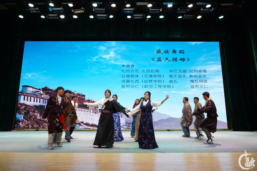 来自多所学院的藏族学生带来了舞蹈《益久措姆》,他们的舞步展现了藏族文化的魅力和神韵,也体现了藏族人民热情开朗和质朴友善的性格,绘就了中华文化的多彩图景。
