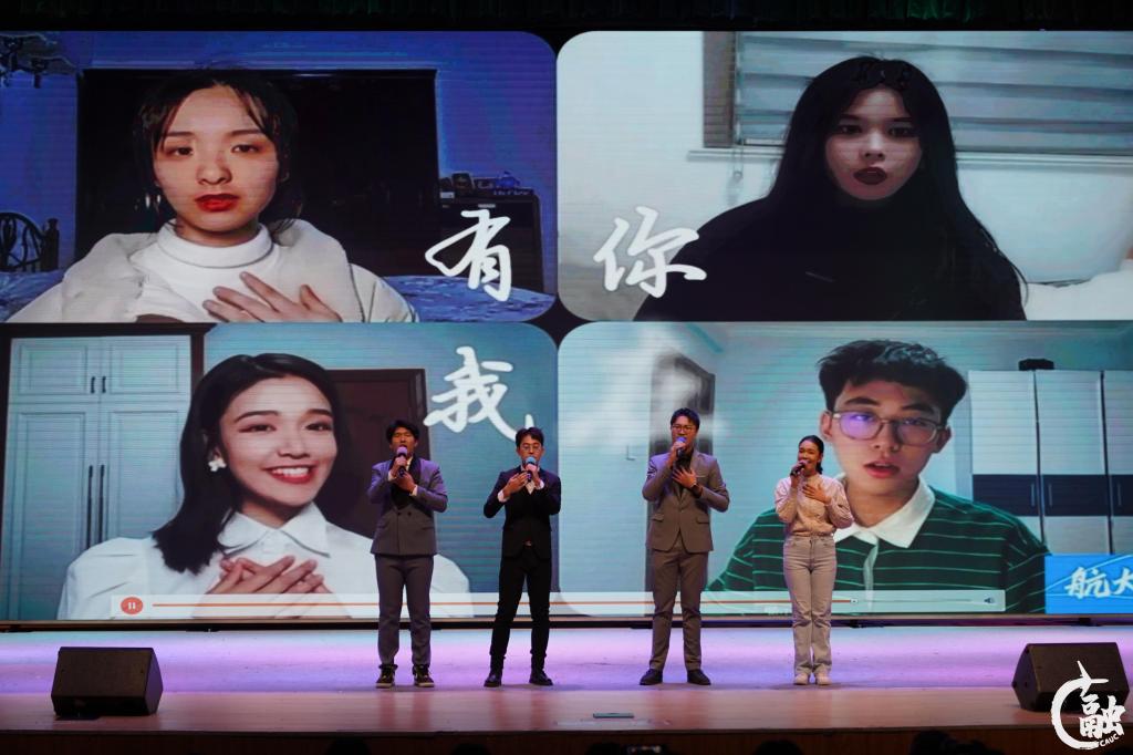 交通学院学生张鑫杰和来自孟加拉的留学生Lotus,联袂演唱歌曲串烧《夜空中最亮的星+平凡之路+月亮代表我的心》。他们用音乐,跨越文化和语言的界限,增进了彼此间的友谊,促进了中外文化交流互鉴。