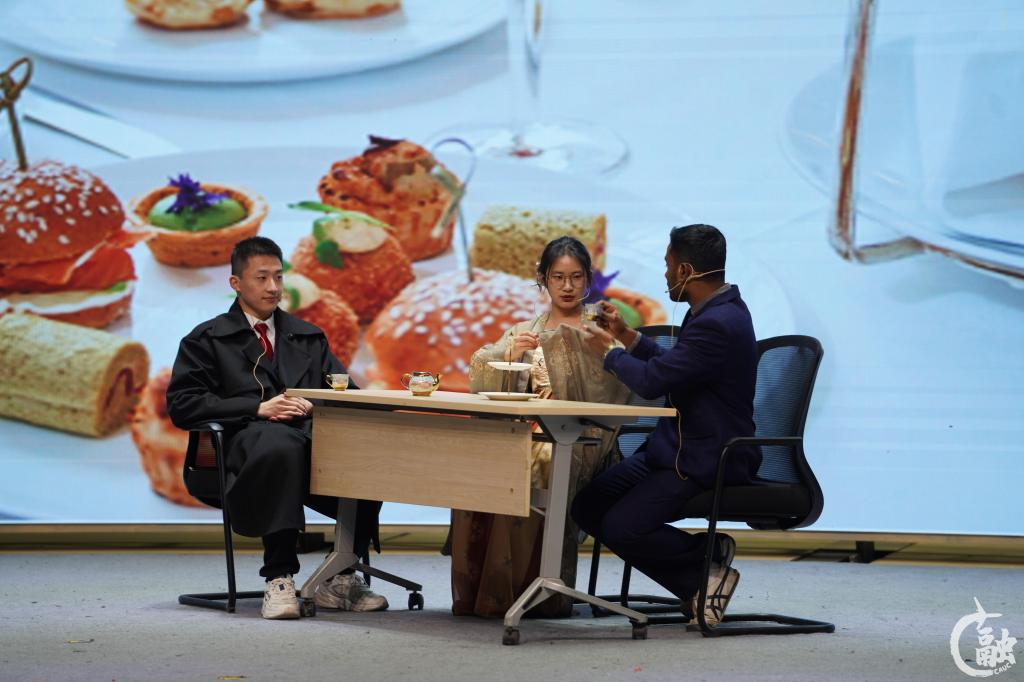 空管学院学生靳世成、沈乐孜和来自斯里兰卡的Andrew Stephan带来的跨文化短剧《和而不同:穿越千年的文化交流》,带领大家体验了一场难忘的文化之旅,体会了文化的多样性与交流性。此节目获得了“外教社杯”高校学生跨文化能力大赛校级比赛冠军并代表学校参加了天津市的比赛。