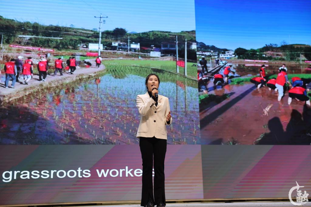 在闭幕式暨表彰大会上,大会进行了“读懂中国”“讲述中国”两个篇章的表彰,机关职能部门负责人先后为名人演讲模仿秀比赛、英语短剧表演大赛、英语配音大赛、“用外语讲好中国故事”短视频大赛、“外研社·国才杯”全国大学生演讲大赛、“外教社杯”全国高校学生跨文化能力大赛中获奖的团队和个人代表颁发获奖证书。