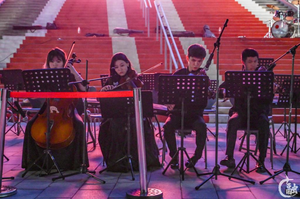 大学生艺术团管弦乐团以《我的祖国》温情开场,开启此次音乐之旅。琴声悠扬,涌动温暖的家国情怀,积蓄蓬勃的前进力量,为迎接中华人民共和国成立74周年奏响先声。
