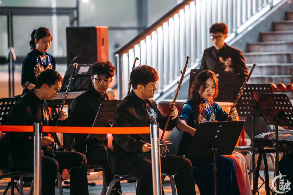 大学生艺术团民乐团成员符范芸难掩激动地说:“第一次来到宁河校区演出,尽管在校三年多来经历过很多大大小小的演出,但这一次依然满怀期待和些许激动。这次的演出赋予了器乐别样的意义:一首《象王行》吹出了泱泱华夏之风;一首《花好月圆》奏出了千里共婵娟。明月与祖国,中秋与国庆,我们用今晚的乐声一同庆祝了这场佳节双临。”