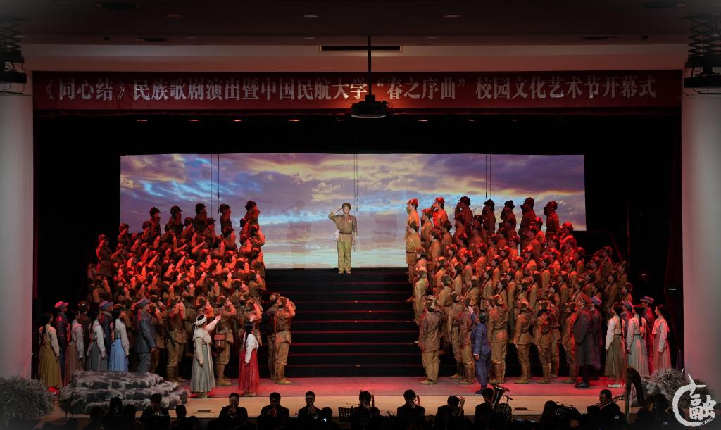 本网讯 “雄赳赳气昂昂跨过鸭绿江,保和平卫祖国就是保家乡......”4月1日、2日晚,伴随着《中国人民志愿军战歌》的震撼歌声,天津音乐学院复排的民族歌剧《同心结》2024年全国巡演首站演出在中国民航大学东丽校区北区礼堂上演。在4月2日晚上的演出中,中国民航大学党委书记曹胜利、校长丁水汀,天津音乐学院党委书记王欢出席演出现场。天津音乐学院院长王宏伟领衔天津音乐学院青年交响乐团、青年合唱团等300余人共同组成演出团队在中国民航大学的舞台上演绎这部红色经典歌剧。两晚演出,双方学校相关部门负责人、中国民航大学各学院师生代表累计1500余人观看演出,现场反响热烈。