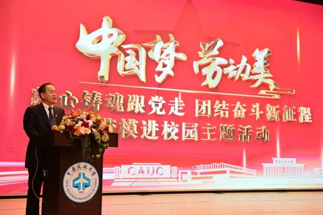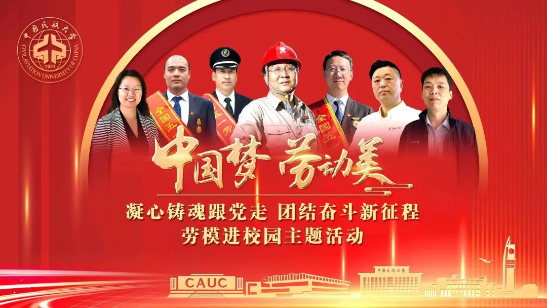 2023年5月19日,“中国梦·劳动美—凝心铸魂跟党走 团结奋斗新征程”2023年劳模进校园主题活动第一站在中国民航大学东丽北校区大礼堂开讲。全国劳动模范张黎明,全国五一劳动奖章冯洪安、赵学学、白剑,上海市劳动模范朱刚,全国五一巾帼标兵张艳玲,全国民航五一劳动奖章周晓猛7位劳动模范用自己的成长经历和先进事迹为中航大师生献上一堂生动的课程。