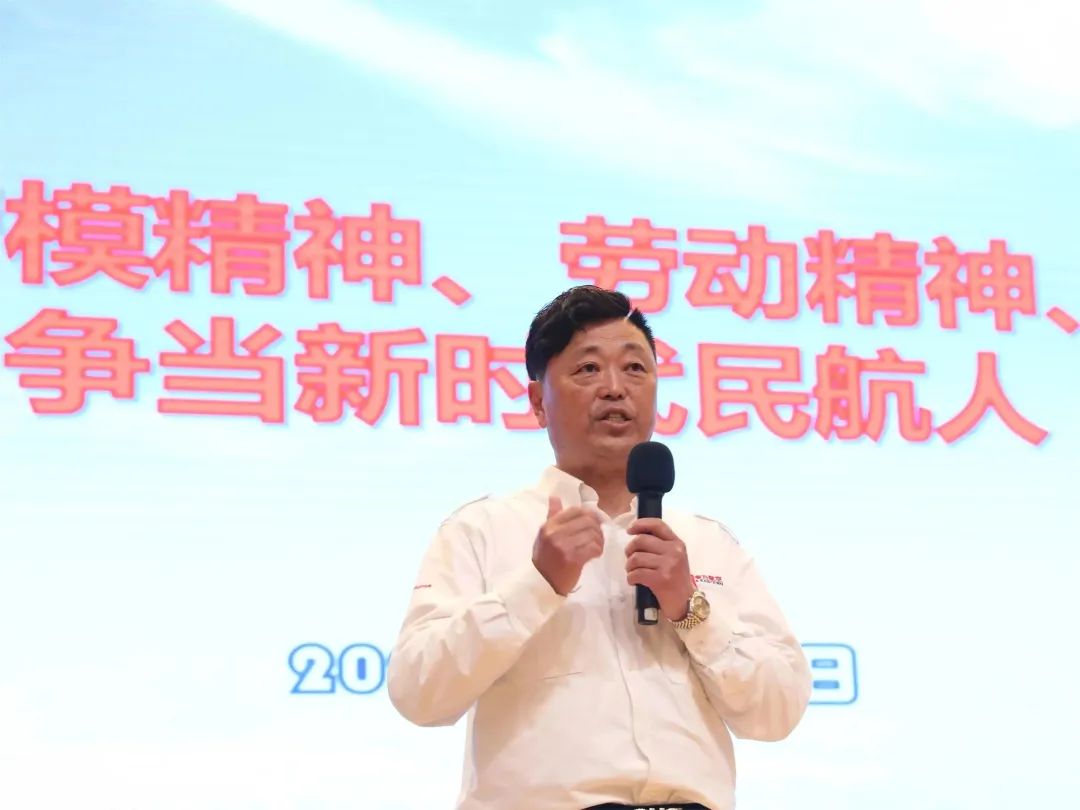 机务工程师朱刚以“大力弘扬劳模精神、劳动精神、工匠精神,争当新时代民航人。”为题,分享了他在岗位上不断钻研维修技能,始终以高度的责任感和使命感全身心投入机务维修工作的动人故事,他将执着专注、精益求精、一丝不苟、追求卓越的工匠精神体现在每一次检查、每一次排故中,彰显了知识型、技能型、创新型民航产业工人队伍的特质。