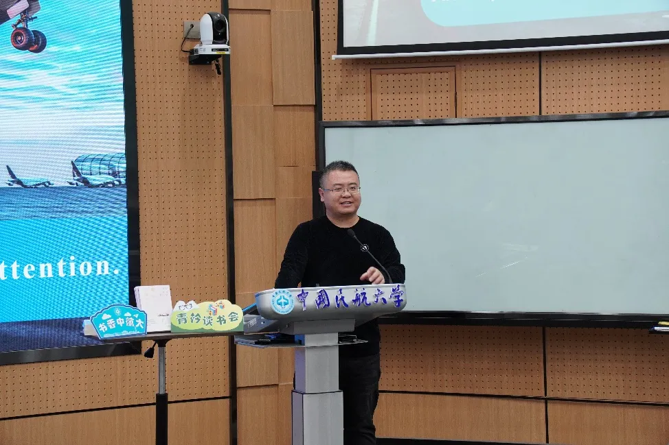 校工会副主席高玉群老师对青年教师和学生积极参加读书活动表示肯定,他指出青衿读书会是校工会、青年工作委员会落实我校“书香中航大”主题系列活动的具体表现形式,是深入推进党工团一体化共建的有效载体之一,广大青年教师和学生要通过读书活动切实感受中华文明的源远流长,持续增强文化自信,不断提高文学涵养,有力拓展工程思维,以饱满的热情投入到我国的民航事业中。