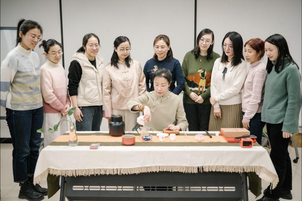 为了弘扬中华优秀传统文化,传承中华茶艺,丰富广大女教职工的精神文化生活,3月5日校工会开展“品味茶香,共享美好”茶艺文化沙龙,活动吸引了众多教职工的积极参与,共同体验了一场充满文化气息的茶艺盛宴。活动伊始,茶艺专家的精湛表演吸引了在场每一位参与者的目光。随着茶香的氤氲,老师们在专家的指导下,学习了泡茶的技巧和品茶的艺术。在轻松愉悦的氛围中,大家不仅学会了如何欣赏各种茶叶的独特风味,还了解到了茶文化背后的深厚历史和哲学。在交流环节,老师们分享了自己的教学心得和生活感悟,增进了彼此的友谊。
