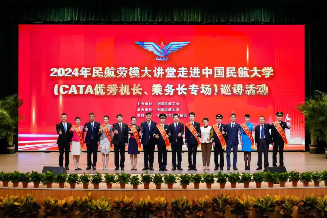 5月11日,由中国民航工会主办、中国民航大学工会承办、中国航空运输协会支持的“凝心铸魂跟党走,团结奋斗新征程——弘扬劳模精神,聚力民航高质量发展”2024年民航劳模大讲堂走进中国民航大学(CATA优秀机长、乘务长专场)巡讲活动在中国民航大学隆重举行。