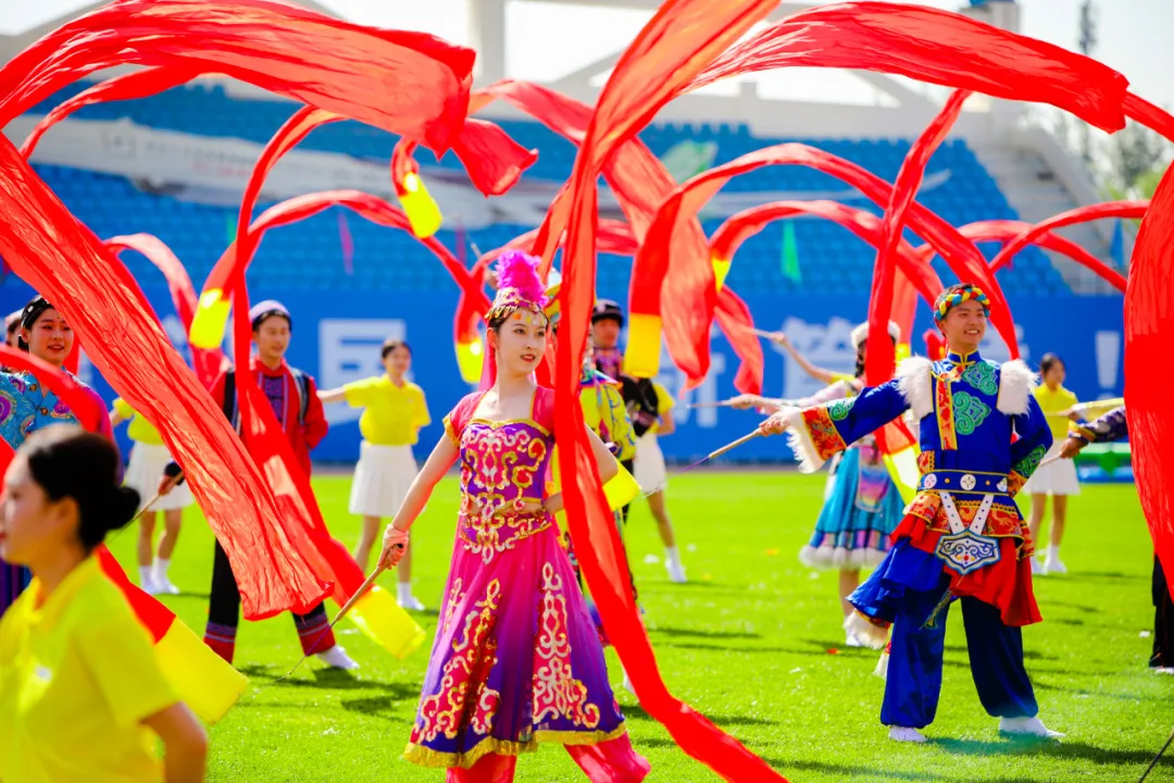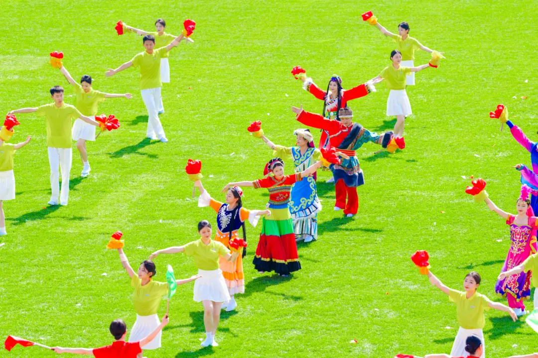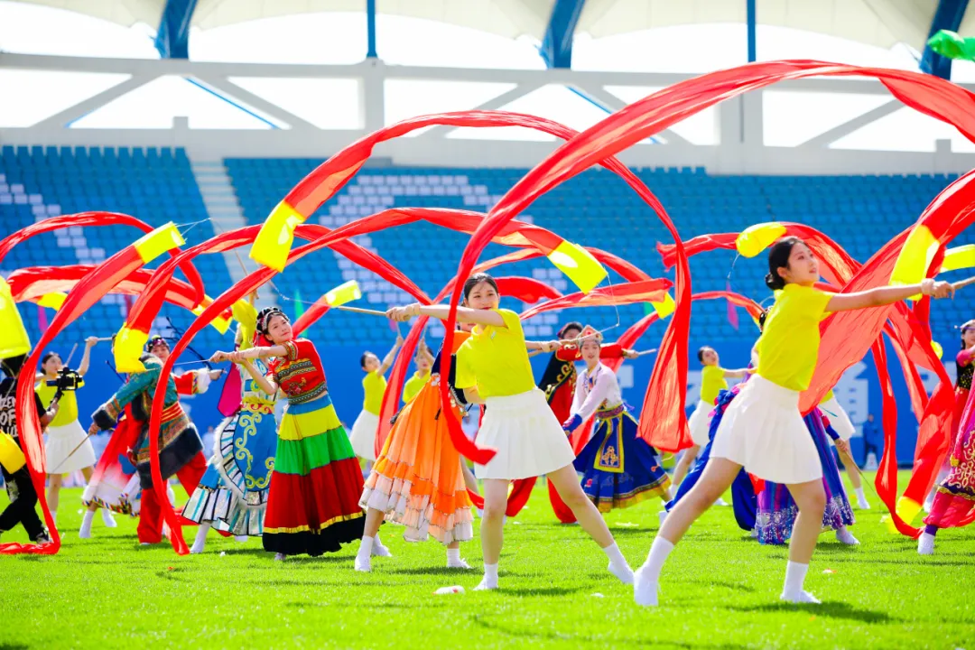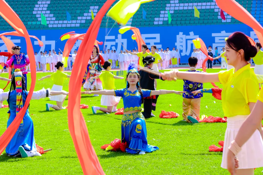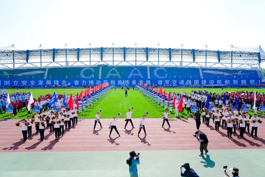 在开幕式上,有这么一支洋溢自信和青春活力的队伍。他们就是中国民航大学承接的百人大型演出和现场礼仪引导员。37名礼仪引导员以端庄、优雅的形象出现在开幕式各参赛队入场的方阵中,展现出蓬勃向上、昂首奋进的精神风貌。大型青春广场舞《再唱山歌给党听》,由乘务学院130名学生倾情演绎,他们2个月的刻苦排演,为这首红色歌曲带来新的活力,他们身着各民族服装和运动服,用欢快的舞蹈展现出全国各族人民在党的领导下,像石榴籽一样紧紧抱在一起的团结和谐景象,展现民航人爱党、爱国、爱民航的炽热情感。这是中国民航大学用文艺精品力作为新中国成立75周年献上的青春礼赞!
