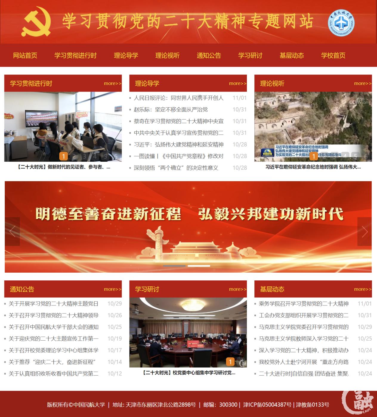 本网讯 踔厉奋发新时代,笃行不怠向未来。中国民航大学学习贯彻党的二十大精神专题网站自10月20日正式上线以来,聚焦重要讲话,宣传重要论述,解读重要精神,展示先进事迹,取得较好成效。