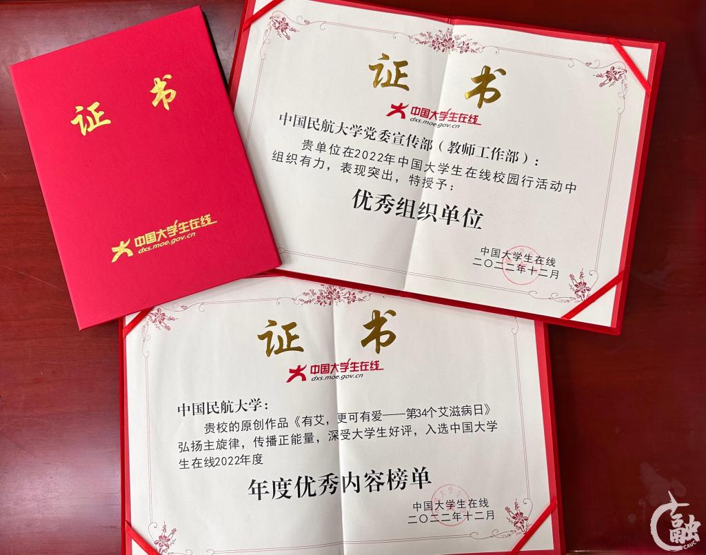 本网讯 近日,教育部中国大学生在线校网通2022年度表彰获奖名单公布,中国民航大学网通站再创佳绩,中国民航大学获评“校园新媒体互动百强”,校党委宣传部获评校园行活动“优秀组织单位”和“校园行新星单位”,学生原创作品《有艾,更可有爱——第34个艾滋病日》弘扬主旋律,传递正能量,深受大学生好评,被评为“教育部中国大学生在线2022年度优秀内容”。2名教师分别获评校园行活动“杰出指导教师”“校网通优秀指导教师”和“校园新媒体优秀指导教师”,法学院2021级学生刘洋被评为“优秀校园媒体人”。