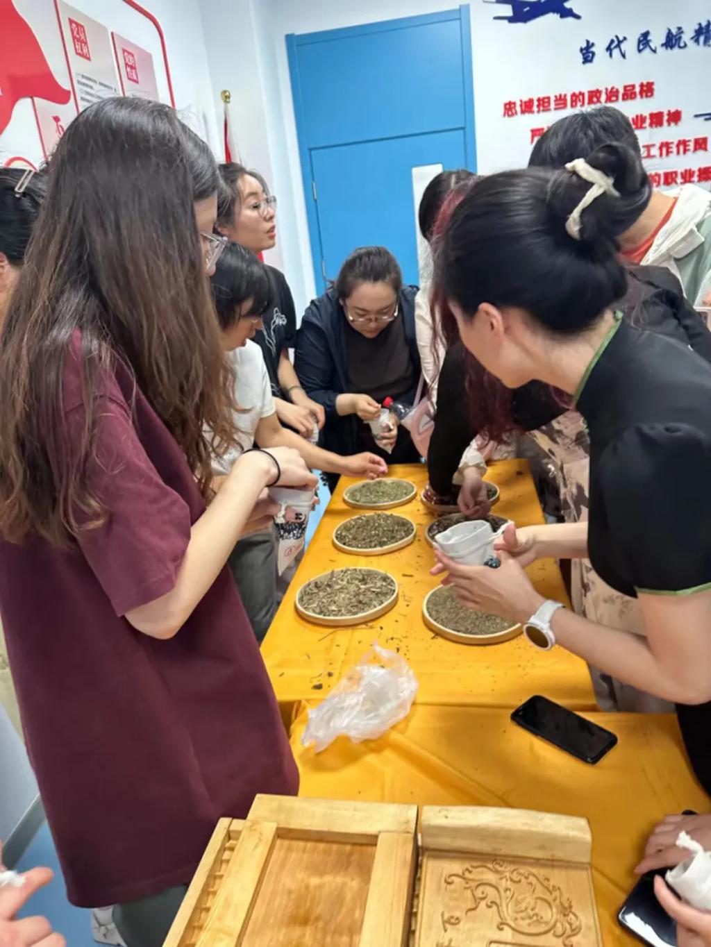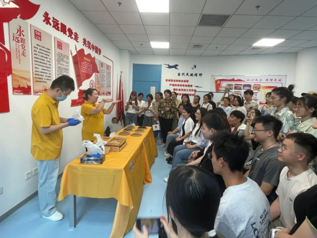 非遗展示过程中,教职工和学生通过亲自看一看、摸一摸、闻一闻,