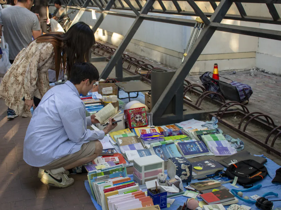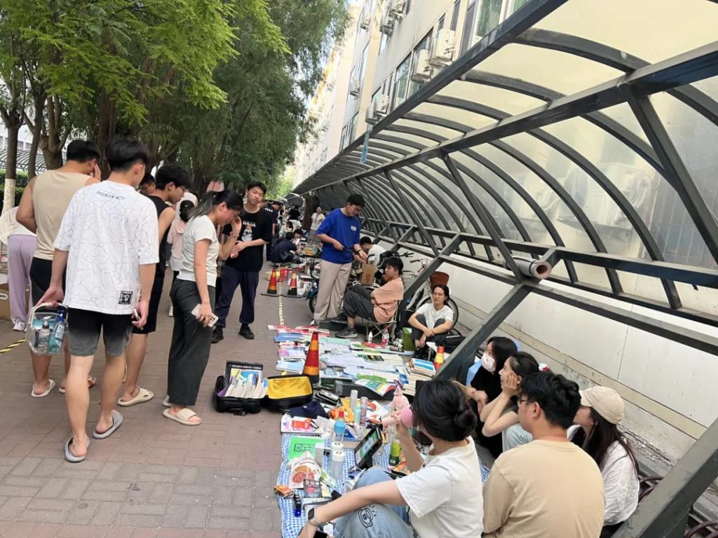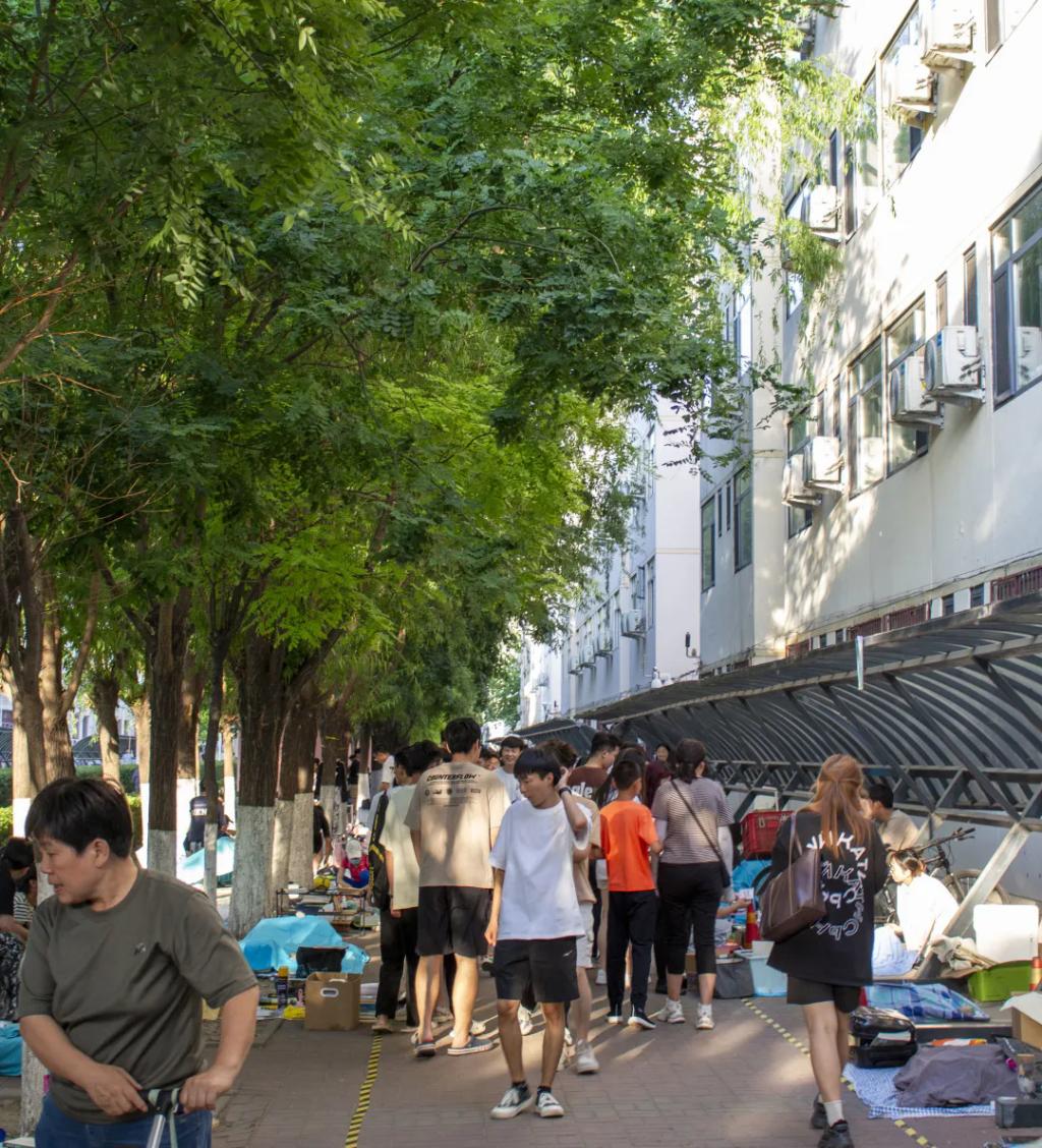 即将离校的毕业生们带着自己的闲置物品,如书籍、衣物、饰品、电子产品等,来到这个特殊的“市场”,