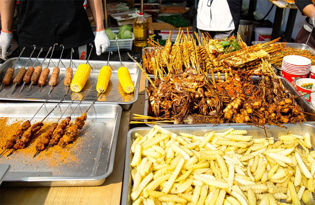 其中包括色泽诱人的烤全羊、风味独特的烤串、噼啪作响的火爆鱿鱼、精致的潮汕风味小吃以及正宗的认一民酱牛肉等,