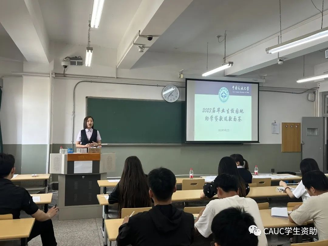 为了便利申请助学贷款的毕业生们还款,5月12日下午,2023届毕业生校园地助学贷款还款面签在北教四405教室举行,本次活动邀请到中国银行东丽支行开展诚信教育讲座,学生代表90余人参加活动。