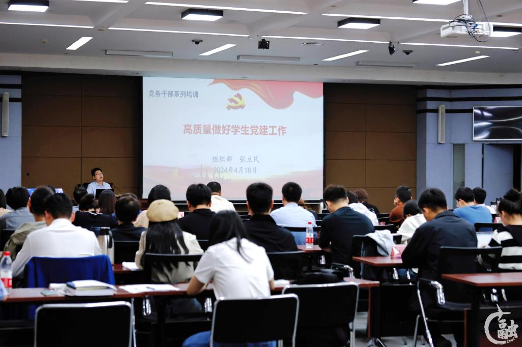 党委组织部副部长张立民以“高质量做好学生党建工作”为主题,全面解读高校学生党建工作的相关制度文件,围绕高校学生党建工作中需要注意的事项、常见问题和解决对策进行专题分享。