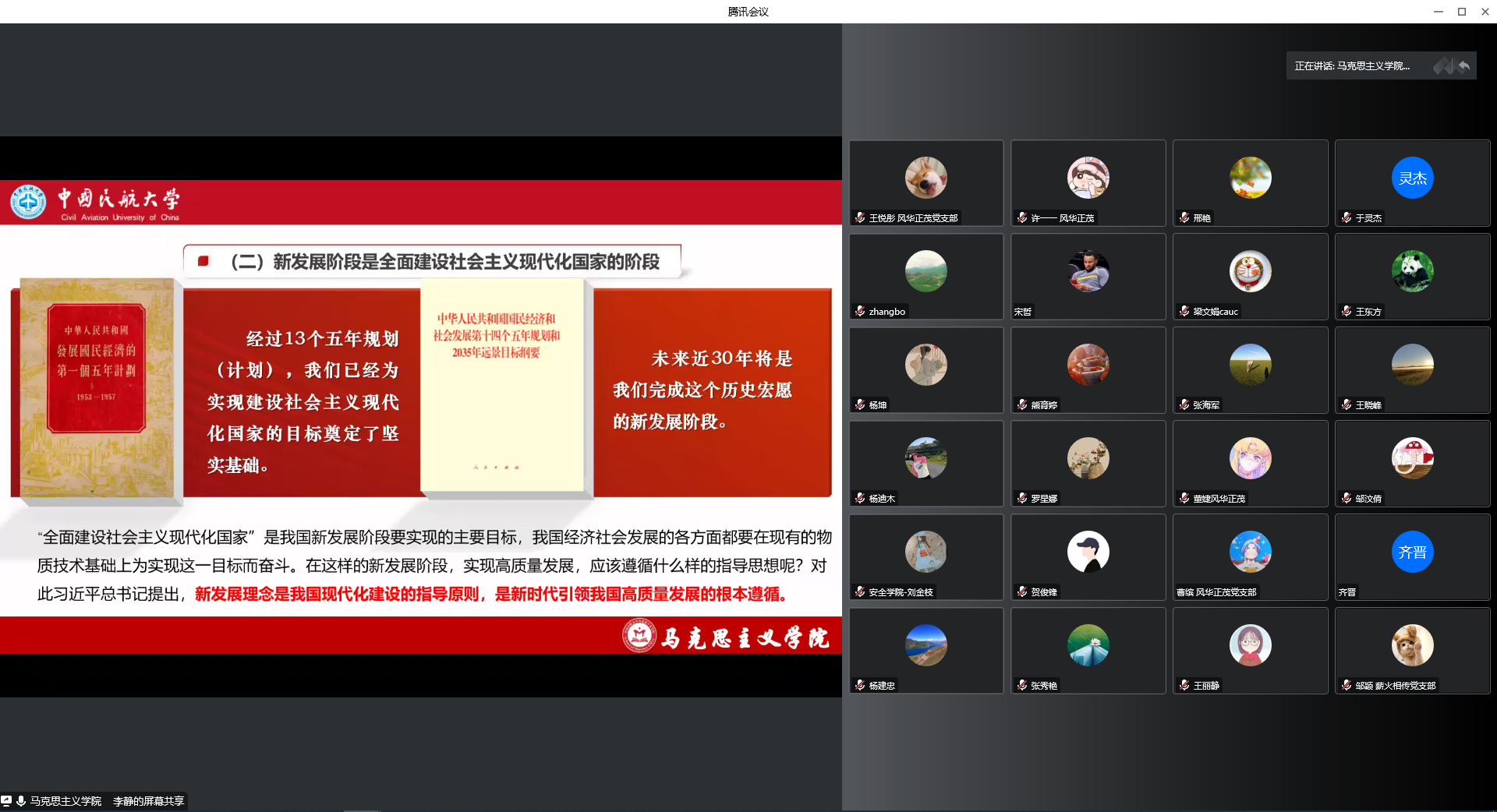11月25日下午,安全科学与工程学院召开中心组学习扩大会,特邀马克思主义学院李静老师,《以新发展理念引领高质量发展》开展党的二十大精神专题讲座,学院全体教职工及学生党员、入党积极分子220余人参加了本次会议。