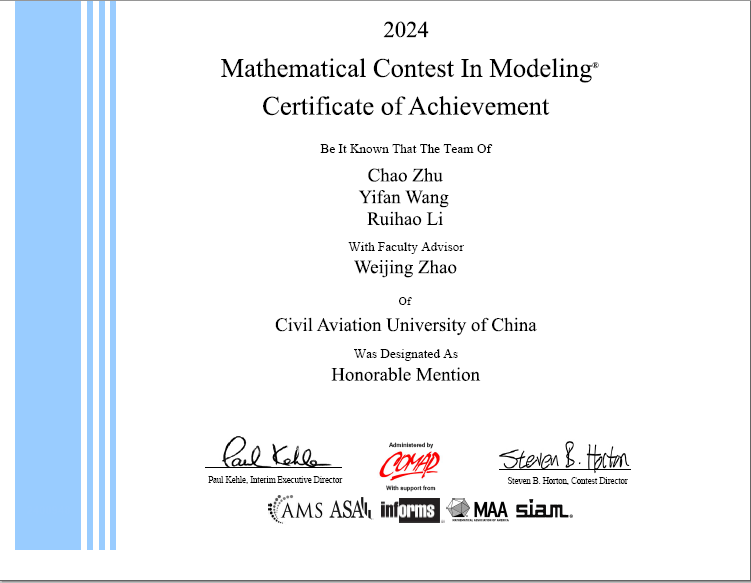近日,2024年度美国大学生数学建模竞赛(MCM/ICM)(以下称为“美赛”)获奖名单揭晓,中国民航大学空中交通管理学院喜获佳绩。