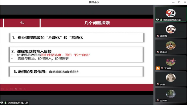 召开了线上课程思政建设分享交流会,学院全体教职工参加,会议由学院工会主席丁坤英主持。