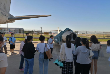 紧接着,同学们在中国民航大学工程训练中心王志国老师的带领下,参观了停机坪的20多架飞机。王志国老师对各种机型及其部件、功能以及历史进行了详细讲解。停机坪的每一架飞机都记录着一代代民航人通过不懈追求赢得民航竞争和发展主动权的伟大历程,展现着我国现代民航工业从无到有、从小到大、从依靠外国到自主研发的奋斗历程。王老师风趣幽默的讲解给每一位同学都留下了深刻的印象,也使同学们认识到了民航精神在民航领域的突出作用,也从历史实物中感受到中航大厚重的历史积淀和奋发的进取精神。