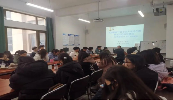 李海平教授指出,《行政复议法》的修订是贯彻习近平法治思想的生动实践,解决了制约行政复议发挥化解行政争议主渠道作用的突出矛盾问题,是将行政复议的制度优势转化为制度效能、推进法治政府建设的关键举措。在问答环节,李海平教授就参会同学提出的行政复议制度是否会向行政法院发展、行政复议适当性审查的标准、行政复议前调解制度是否可行等问题进行了详细解答,并勉励同学们对《行政复议法》展开进一步的学习研究。