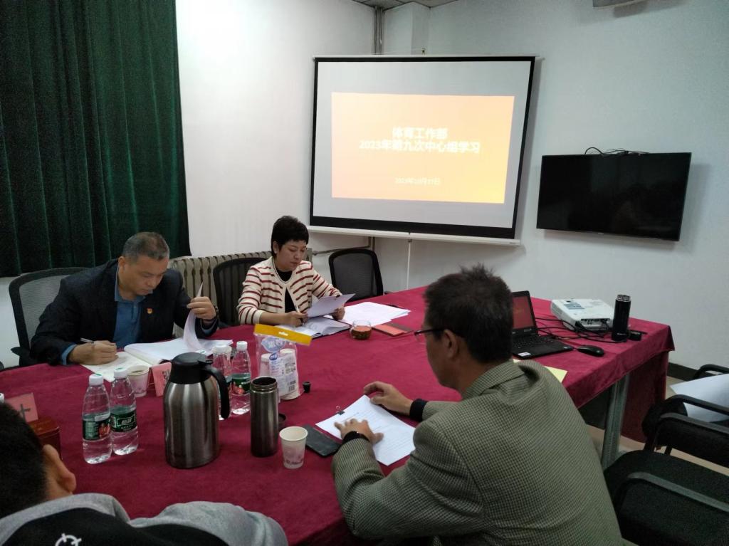 10月27日上午,体育工作部党总支组织本年度理论学习中心组第九次学习(扩大)会,中心组全体成员、中层以上管理干部、教务科办公室全体成员参加了扩大学习,校党委宣传部副部长、计算机科学与技术学院党委书记旁听指导。