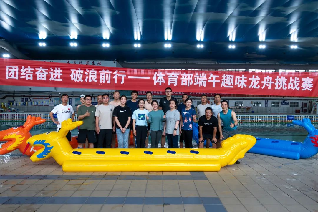在传统端午佳节,体育工作部党总支、工会共同举办了端午趣味龙舟赛。6月20日9:00 ,我部全体教职工聚集在东丽校区北院游泳馆,趣味横生的龙舟赛正式开赛。