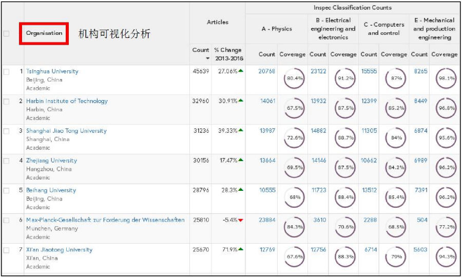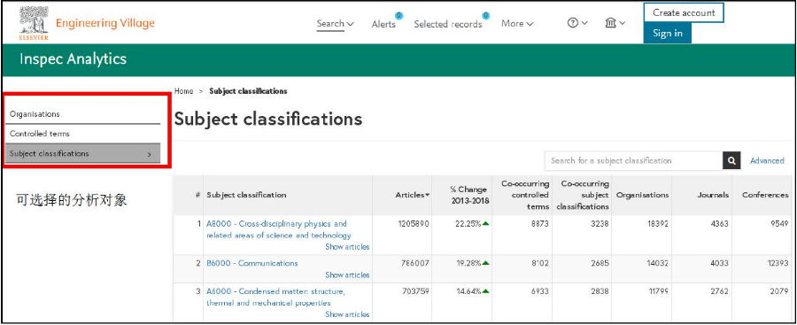 Inspec Analytics基于INSPEC的强大检索功能和近50年的科研数据积累,为物理学与工程技术领域提供强有力的研究支撑,供使用者进行工程技术领域的科研产出分析,工程领域科研机构之间的比较分析等功能。