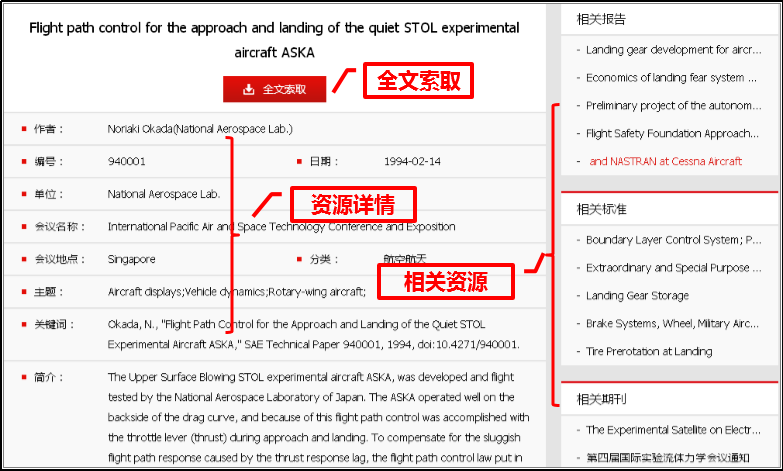 《航空航天及汽车工业技术资料系统》主要收录航空航天及汽车工业的相关资源,由报告、标准、期刊、专利四种文献类型组成的技术型资料系统,为研究者提供本领域内的最新发展情况,以及较完整的技术资料。本系统提供从1994年至今的技术报告,来自于全球汽车工程领域专家的最新进展和技术创新,技术报告由专家撰写并进行同行评审,涉及汽车、航空航天和商用车领域。还提供地面车辆标准(J-Reports)、航空航天标准(AS)和航天材料规范(AMS)等标准文献及国内航空航天、汽车等相关的期刊、专利文献。