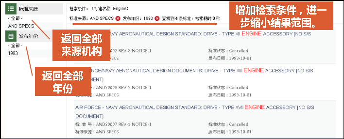 3. 标准检索结果筛选,可限定标准来源、发布年份。