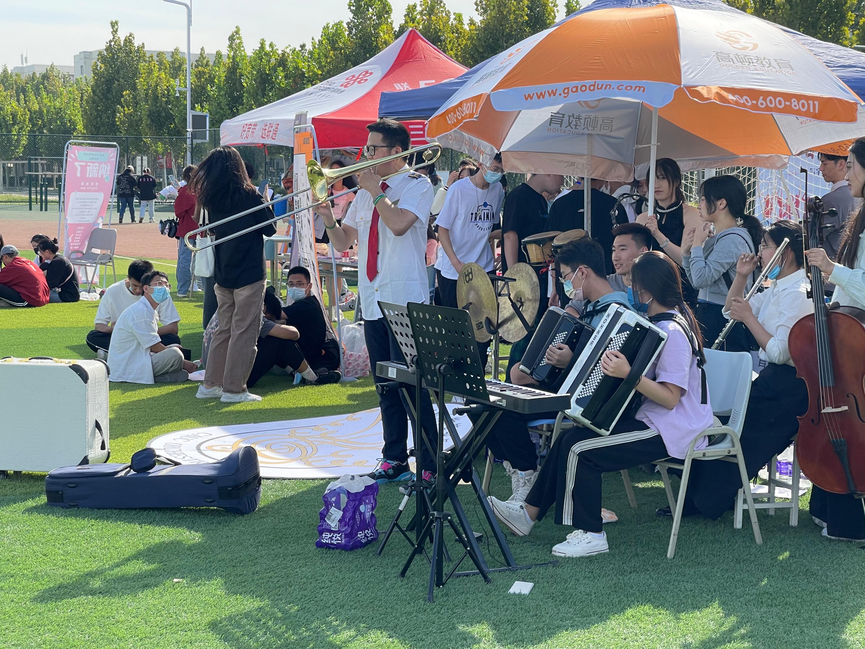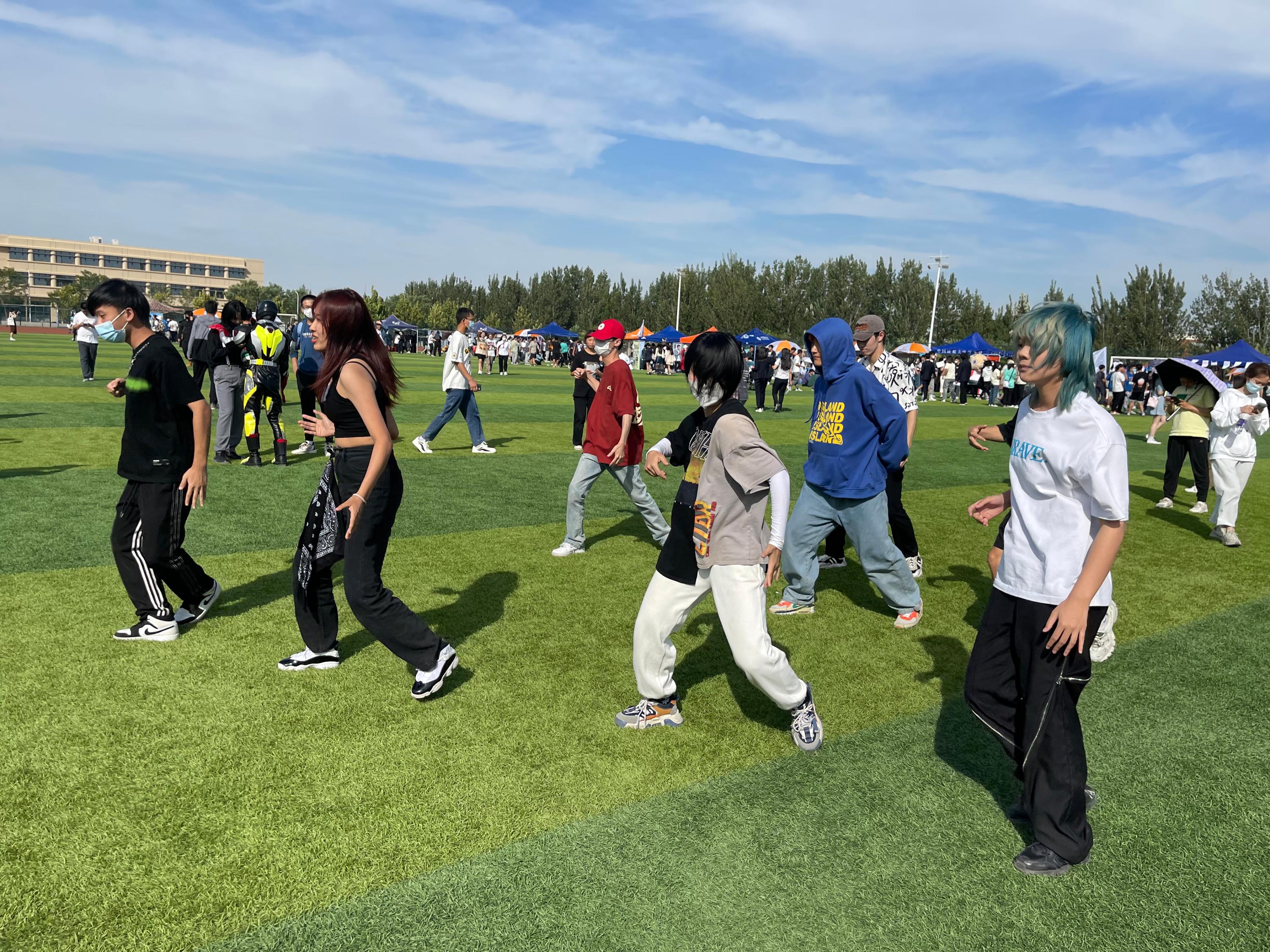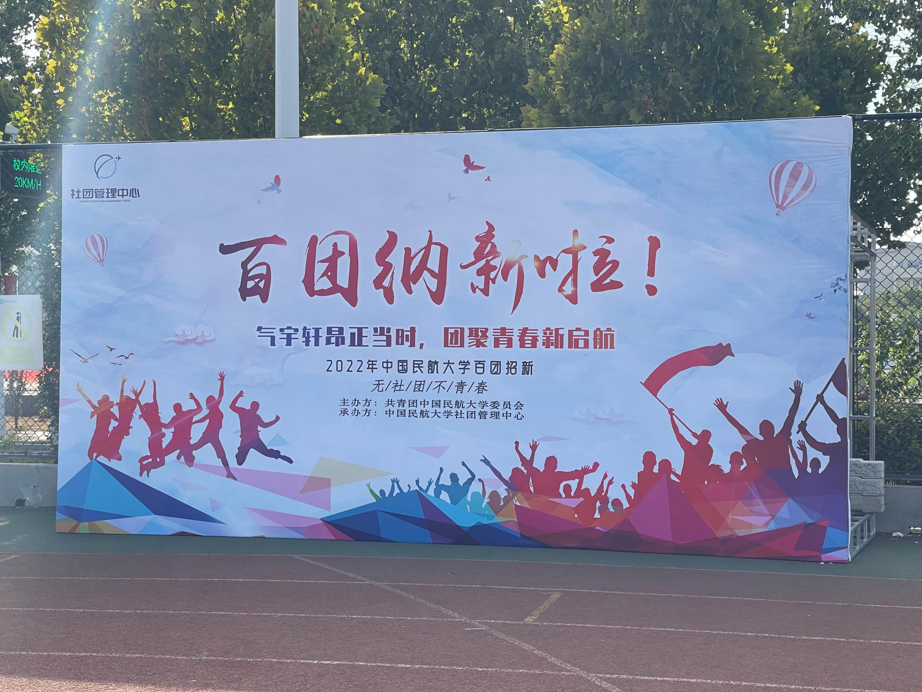 2022年9月24日,在校团委的统一协调组织下,中国民航大学学生社团招新活动在东丽校区南院东田径场火热进行,风格多样、特点各异的70余家学生社团和学生组织百花齐放,尽情展现青年人的活力与朝气。活动现场,嘹亮的口号和精彩的表演吸引往来师生驻足观看。