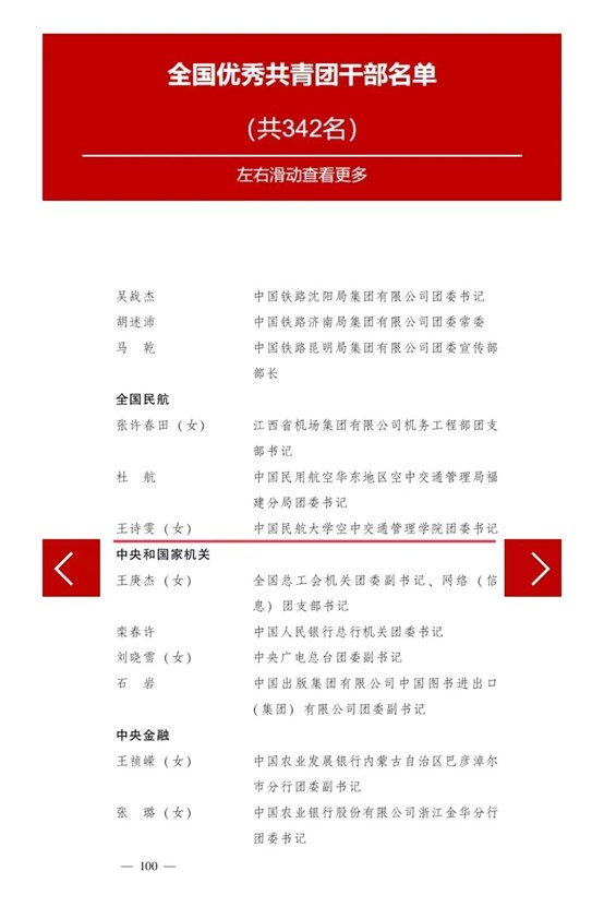 今日,共青团中央揭晓了全国“两红两优”光荣榜,我校空中交通管理学院团委书记王诗雯获评“全国优秀共青团干部”!
