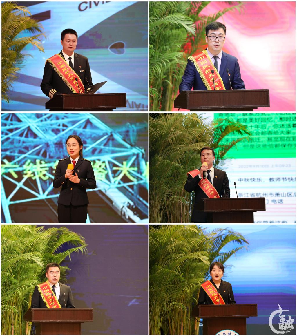 中国民航大学“青年五四奖章”荣誉获奖代表、朝阳飞行学院章麒麟,获奖教师代表中欧航空工程学院史磊,天津市“青年五四奖章”荣誉获得者、飞行分校学工办主任蒋洪旭,全国民航“青年文明号”荣誉获奖单位代表、杰普逊飞行学院谷宗辉以及全国“优秀团干部”荣誉获得者、空中交通管理学院团委书记王诗雯等5位青年教师先后发言,分享了他们在前进路上的成长经历和工作经验,展示了当代青年立志勤学、实干担当、敬业奉献、锐意创新的青春风采。校团员青年代表、经济与管理学院张洁进行青春宣讲,她在演讲中表示,手上捧着的是荣誉,身上肩负的更是责任,将在“学习二十大 永远跟党走 奋进新征程”主题教育实践中,心怀“国之大者”,与党同心、接续奋进,永存高远之志,筑牢成才之基的青春决心和信心,勇敢接过历史的接力棒,在实现中国梦的伟大进程中,绽放异彩,再立新功。