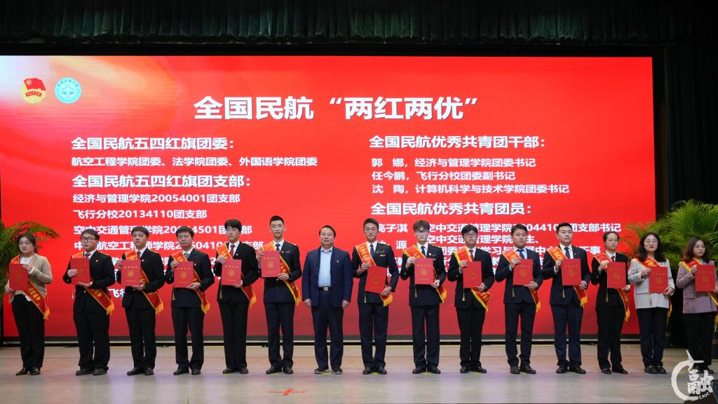大会在庄严的国歌声中拉开序幕。大会对在全国、全国民航以及天津市“两红两优”“天津市创新创业奖学金”评选等创先评优中的获奖青年师生与集体予以表彰;同时,授予飞行分校章麒麟等60人和党办校办文秘室等13个集体中国民航大学“青年五四奖章”荣誉称号,授予交通科学与工程学院王馨悦等66人中国民航大学“青年五四奖章”提名奖荣誉称号;授予航空工程学院20014101团支部等8个团支部中国民航大学“标兵团支部”荣誉称号,经济与管理学院陈柏含等10人中国民航大学“标兵团干部”荣誉称号,空中交通管理学院团委等5个团委中国民航大学“五四红旗团委”荣誉称号。