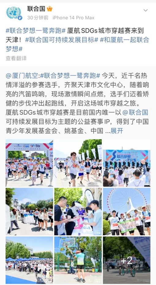 本次活动圆满举办,联合国官方微博特别转发厦航此次赛事信息。