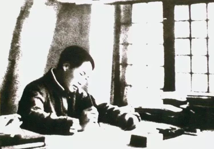 ▲1938年5月,毛泽东发表《抗日游击战争的战略问题》和《论持久战》,确定了抗日战争的战略方针。图为毛泽东在延安窑洞撰写《论持久战》