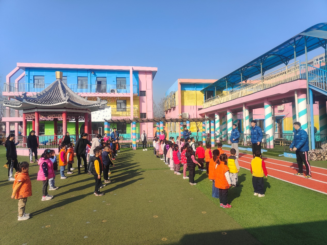 活动当日,体育部学生志愿者们怀揣着期待的心情到达中航大幼儿园时,幼儿园参加活动的小朋友们已经排着整齐的队列,如同挺拔的“小松柏”一般等待着体育部的大“哥哥姐姐”们的到来。活动伊始,中航大幼儿园的教师和小朋友们对体育部的教师和学生志愿者们的到来表示了热烈的欢迎,进行简短的介绍后,本次活动正式开始。为防止运动损伤,科学的进行体育锻炼。体育部学生志愿者带领小朋友们做了准备活动,部分志愿者在队伍前方喊口令并做动作示范,其他几名志愿者穿插于队伍当中为小朋友进行动作指导与纠错。
