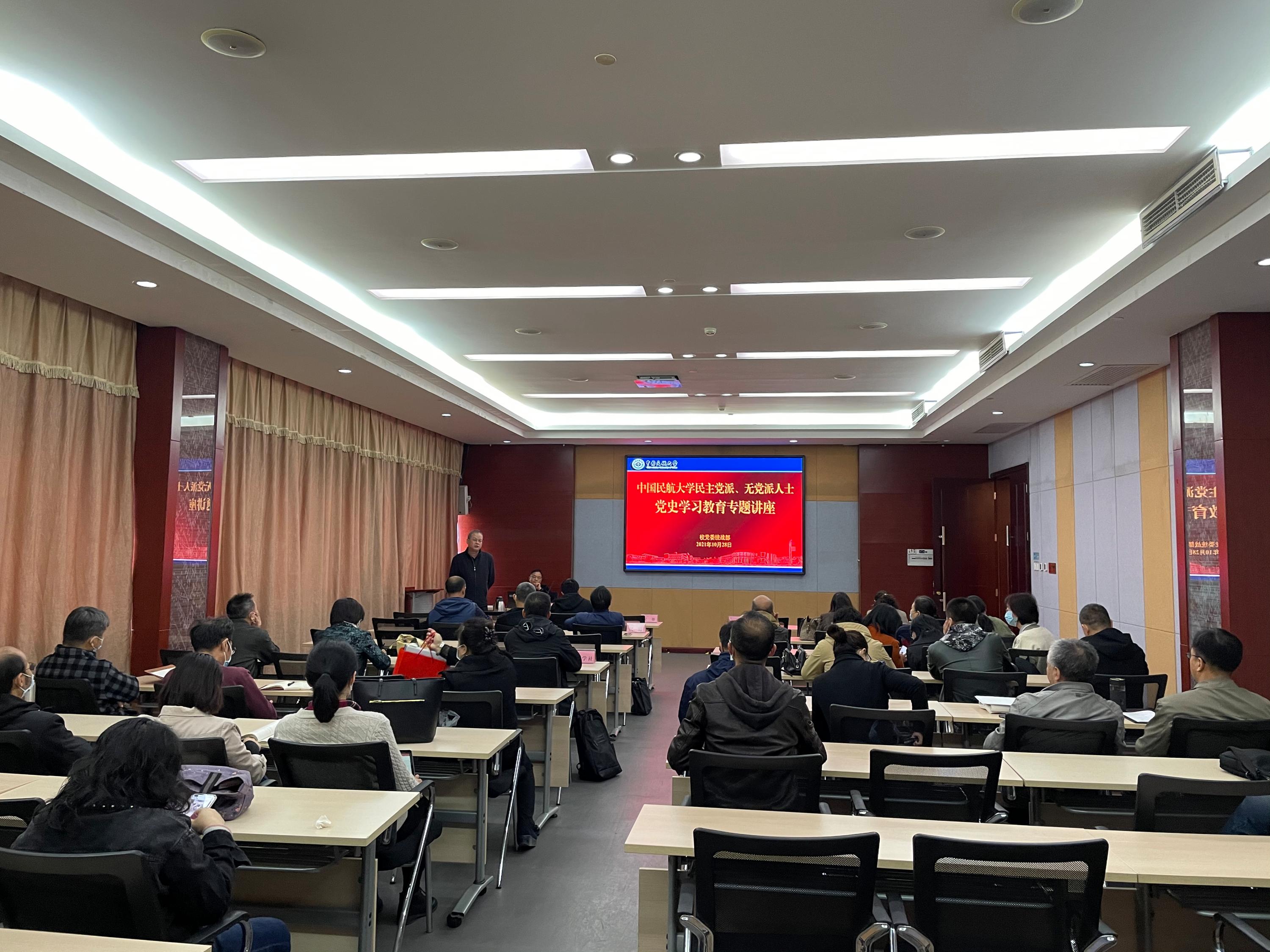 10月28日上午,校党委统战部举办党史学习教育专题讲座,我校民主党派和无党派人士40余人参加。