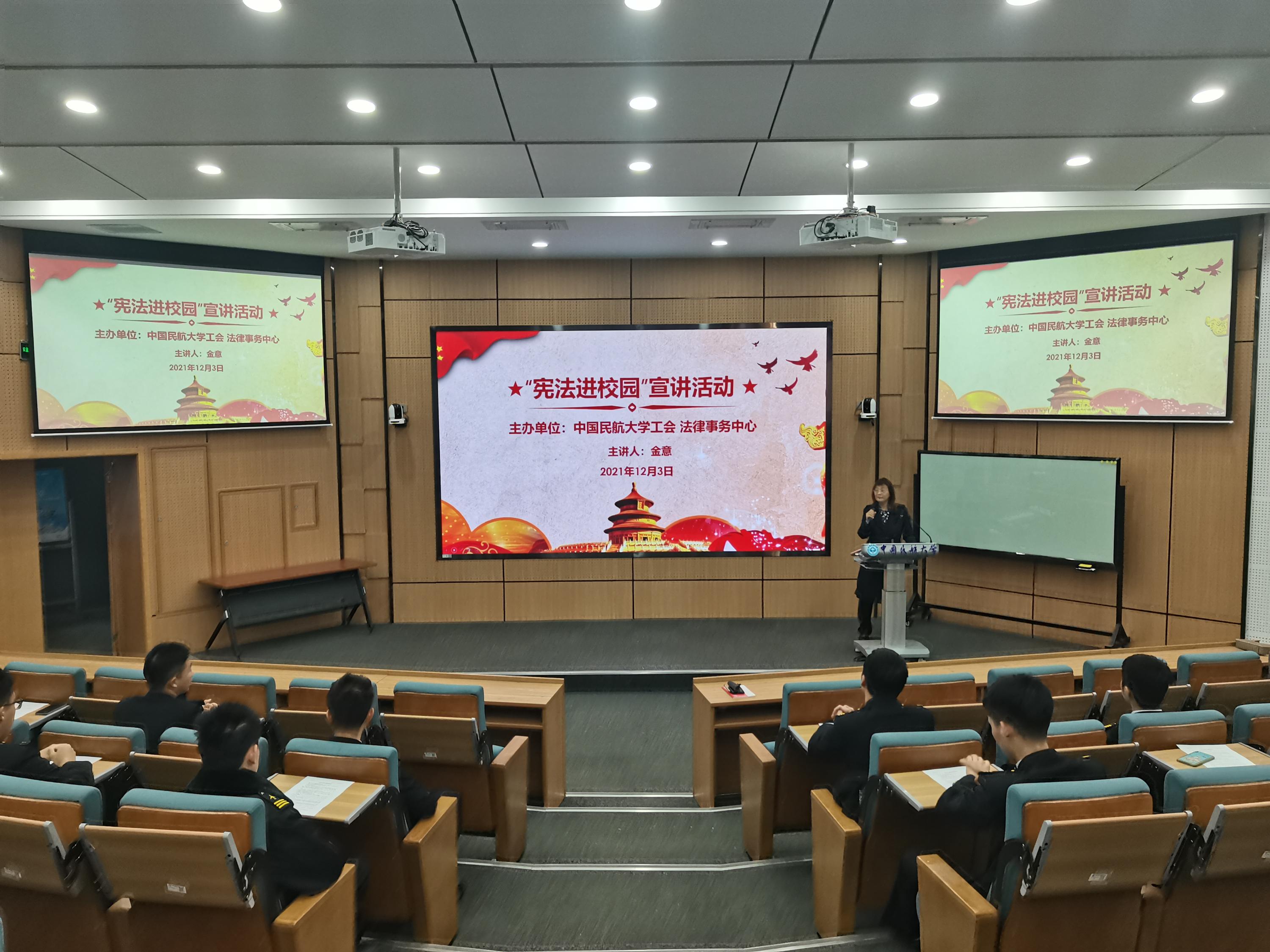 2021年12月3日上午,校工会特邀法律事务中心主任、农工党支部主委、一级法律顾问金意老师开展“宪法进校园”宣讲活动。讲座共吸引40余名师生参加。