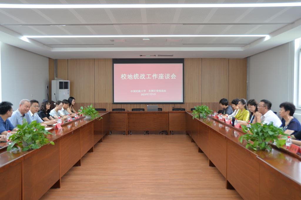 7月5日上午,东丽区委常委、统战部部长刘辉、区委统战部副部长韩维莹一行来校调研。校党委统战部部长葛维建出席座谈会。